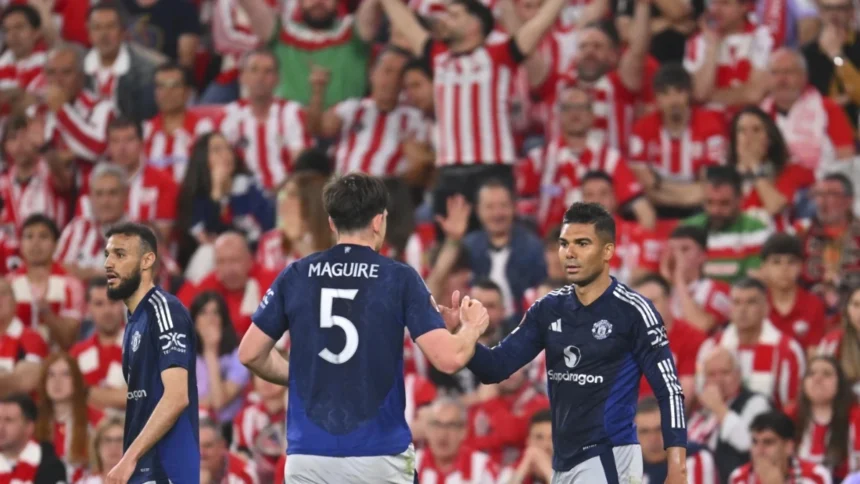 United were on the back foot for much of the first half-hour, as Inaki Williams and Berenguer both came close for the hosts, but Casemiro headed home their opener before more drama unfolded five minutes later. Convinced by the VAR to change his original call, the referee awarded the visitors a penalty and also sent Vivian off, Bruno Fernandes subsequently converted the spot-kick.