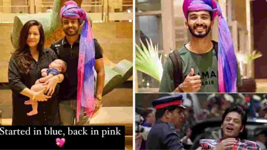 While the other two cricketers arrived alone, Karun Nair arrived with his wife and six-month old child. RR captioned the video as: