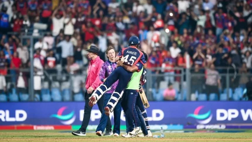 NEP vs SCO: Nepal has ended a 12-year wait for a third T20 World Cup victory against Scotland at the Wankhede Stadium in Mumbai. After chasing down 171 in 19.2 overs with the help of an unbelievable unbeaten half-century from Dipendra Singh Airee, the celebrations were electric from Nepal’s passionate supporters.