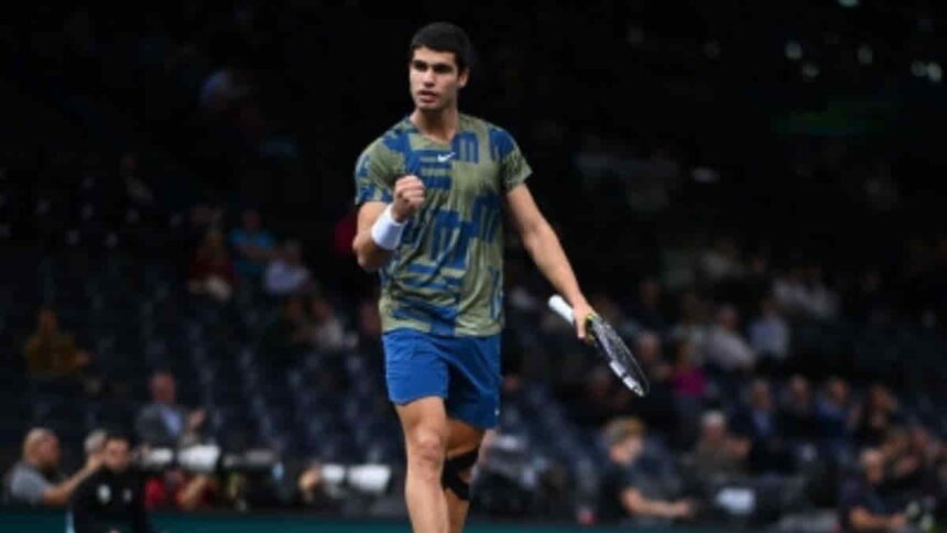 World No.1 Carlos Alcaraz won nine of the first 10 games to register a 6-1, 6-3 third-round victory over Grigor Dimitrov and reach the quarterfinals at the Paris Masters, here on Thursday.