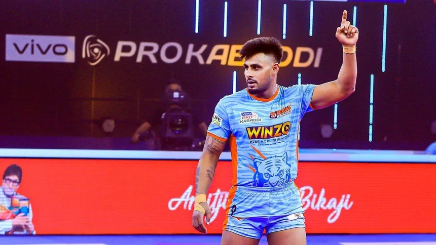 Arjun Deshwal became the seventh raider to reach 1000 raid points in Season 11 against UP Yoddhas. He is the second-fastest to achieve this feat, doing so in 97 matches. He currently has 1327 points in 114 games.