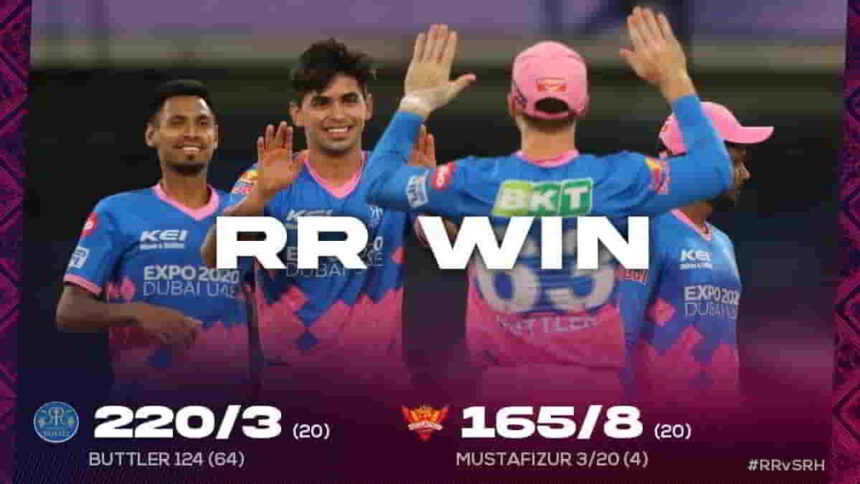 Rajasthan Royals defeated Sunrisers Hyderabad by 55 runs in the 28th match of IPL. This is Rajasthan’s third victory. After chasing the target of 221 runs put by Rajasthan, the Hyderabad team could score 165 runs for 8 wickets. Manish Pandey scored 31 and Johnny Bairstow scored 30 runs for Hyderabad. Chris Morris took the most 3 wickets from Rajasthan.