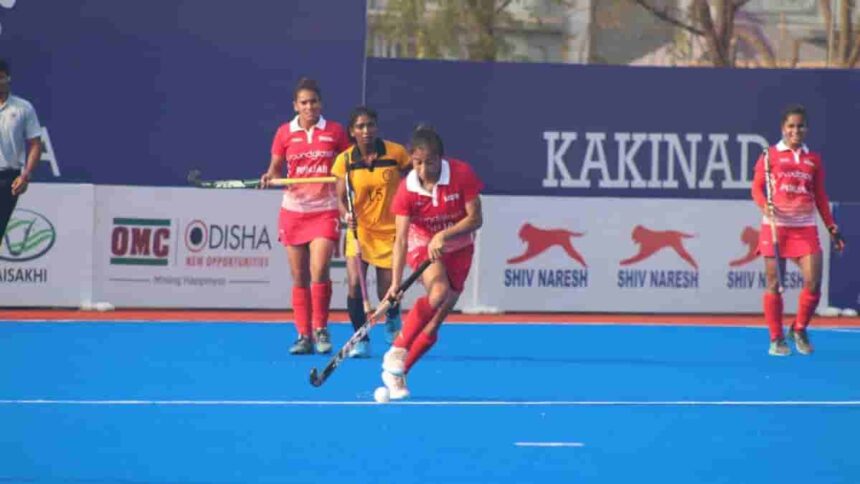 Hockey Jharkhand defeated Hockey Punjab 2-0 to secure their place in the semifinals. Alka Dungdung (48′) and Albela Rani Toppo (52′) scored late goals to propel Hockey Jharkhand to the next round.