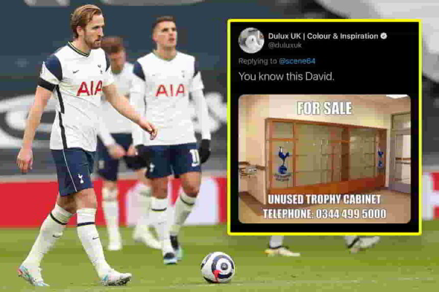 Another user suggested that Spurs would have the option to store “tins of paint in the trophy cabinet until further notice as we don’t appear to put whatever else in there” and the Dulux account answered with a modeled advertisement for an unused trophy cabinet available to be purchased, with the Spurs logo overlaid on the picture.
