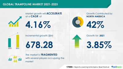 The trampoline market size is expected to grow by USD 678.28 million from 2021 to 2025, and the growth momentum of the market will accelerate at a CAGR of 4.16% during the forecast period.