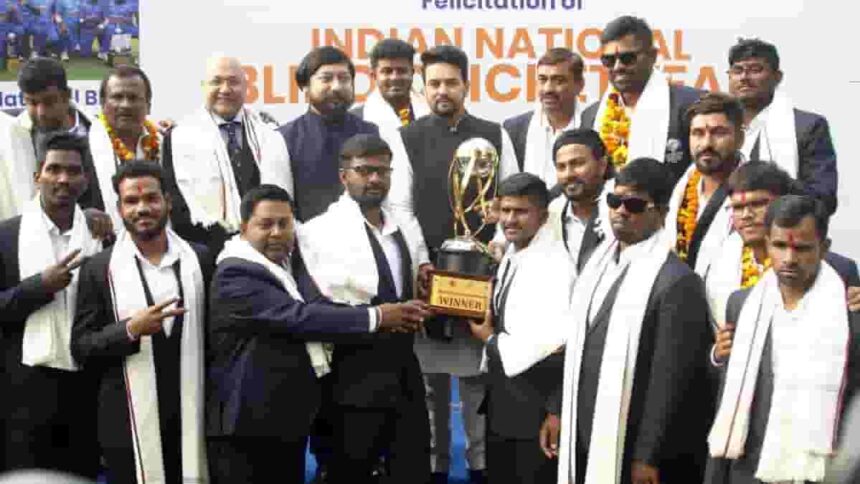 Union Minister of Youth Affairs and Sports Anurag Singh Thakur on Monday felicitated the Indian blind cricket team following its triumph in the T20 World Cup for the Blind for the 3rd consecutive time last Saturday.